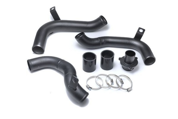 Charge pipe firmy TurboWorks. Zestaw zawiera wszystkie niezbędne elementy potrzebne do montażu w samochodzie. Całość wykonana jest bardzo starannie i dokładnie, elementy spawane są tzw. TIGIEM, T-6061 aluminium.Zestaw zawiera łączniki silikonowe i obejmy potrzebne do montażu