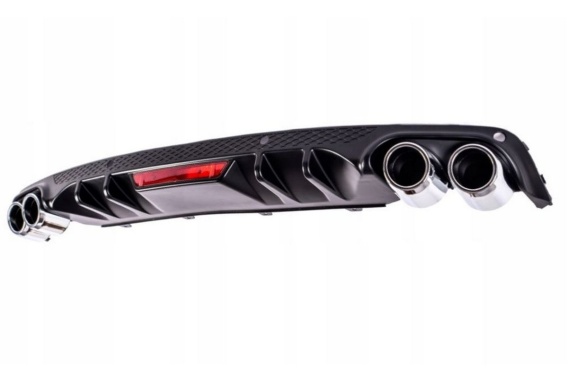 Tylny spojler zderzaka- dyfuzor z chromowanymi atrapami końcówek wydechu.
