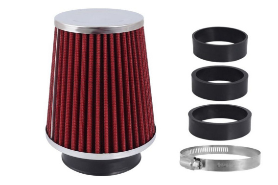 Profesjonalny filtr stożkowy marki Carmotion. Cechuje się między innymi: prostym montażem, dzięki gumowemu kołnierzowi z opaską zaciskową. Poprawia dopływ powietrza, zapewnia wzrost mocy i zwiększa moment obrotowy. Wykonany jest z bawełny, powlekany siatką ze stali nierdzewnej. Długa żywotność, dzięki możliwości konserwacji za pomocą zestawów czyszczących. W zestawie redukcje montażowe, dzięki którym można dopasować filtr do większości samochodów.