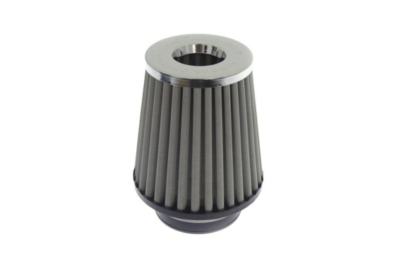 Profesjonalny filtr stożkowy SIMOTA wykonany ze stali nierdzewnej. Cechuje się miedzy innymi: prostym montażem dzięki gumowemu kołnierzowi z opaską zaciskową, poprawia dopływ powietrza, zapewnia wzrost mocy i zwiększa moment obrotowy. Nie wymaga używania środków do konserwacji. Zabrudzony filtr wystarczy wyczyścić sprężonym powietrzem, przepłukać wodą i nadaje się do ponownego użycia. Odporny na strzały gazu w samochodach zasilanych LPG.