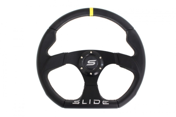Kierownica sportowa SLIDE 350mm offset 25mm skóra yellow strip