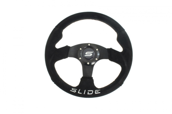 Kierownica zamszowa firmy SLIDE o średnicy 320mm. Super leży w dłoniach, posiada przycisk klaksonu. Sprawdzona w boju - nie gnie się, nie wyciera nadmiernie. Zdjęcia kierownicy nie są w żaden sposób podrasowane, przedstawiają dokładnie sprzedawany towar.