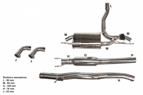Aktywny układ wydechowy TurboWorks z przepustnicami typu CatBack. Wydech wykonywany z niezwykłą starannością z najwyższej jakości stali nierdzewnej. Układ pozwala zwiększyć moc samochodu przez optymalizację prędkości przepływu spalin z silnika. Zastosowanie przepustnic w wydechu pozwala komfortowo przejechać trasę jak i dobrze usłyszeć dźwięk silnika.