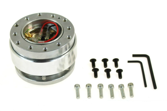 Urządzenie do szybkiego ściągania kierownicy. Za pomocą 2 ruchów można ściągnąć kierownicę i wyjść z samochodu. Naba posiada 6 śrub mocujących, co umożliwia jej zastosowanie do większości kierownic.