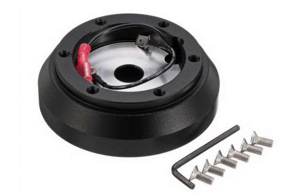 Naba kierownicy firmy Slide. Pozwala na montaż większości sportowych kierownic dostępnych na rynku. Zawiera przewód do przyłączenia klaksonu.