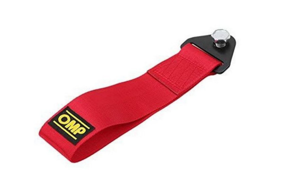 Materiałowy zaczep holowniczy OMP style. Produkt wykonany z najwyższej jakości materiału odpornego na rozciągnie i uszkodzenia mechaniczne.