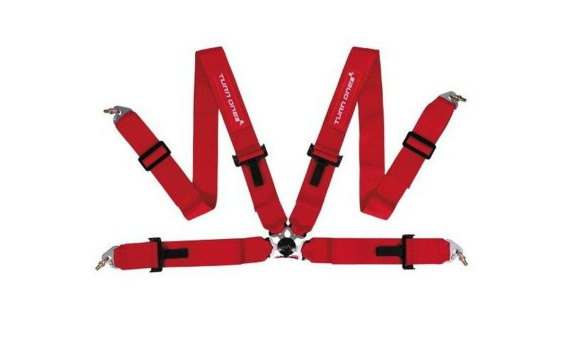 Pasy sportowe 4 punktowe TURN ONE First FIA red