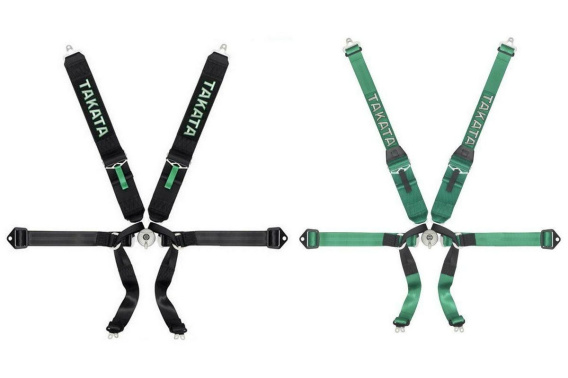 Homologowane 6-punktowe pasy bezpieczeństwa tuningowe firmy Takata przeznaczone do użytku w formułach. Mocowane za pomocą zwykłych śrub z centralną bezpieczną klamrą.