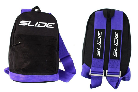Sportowy plecak firmy Slide. Plecak wykonany z wysokiej jakości materiału, kieszonka z przodu wykończona zamszem. Szelki plecaka wykonane z pasów firmy Slide. Zastosowane materiały zapewniają bardzo wysoką jakość i wytrzymałość. Wnętrze wyłożone miękką pianką i czarnym materiałem. Posiada przegrodę na laptopa.