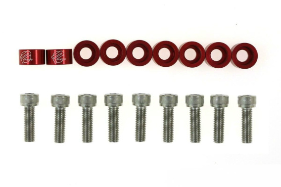 Śruby i podkładki ozdobne o wysokiej jakości. Śruby o wysokiej twardości ze stali nierdzewnej. Podkładki wykonane z lotniczego stopu aluminium oraz anodyzowane w celu uzyskania wysokiej jakości kolorowej powłoki.