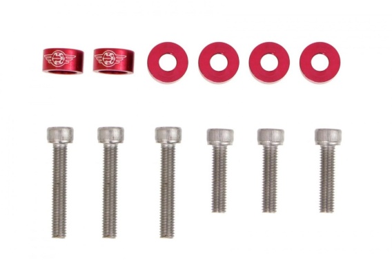 Śruby i podkładki ozdobne o wysokiej jakości. Śruby o wysokiej twardości ze stali nierdzewnej. Podkładki wykonane z lotniczego stopu aluminium oraz anodyzowane w celu uzyskania wysokiej jakości kolorowej powłoki.