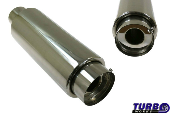 Uniwersalny tłumik sportowy o konstrukcji przelotowej firmy TURBOWORKS. Tłumiki tej firmy wyróżniają się najlepszym na rynku stosunkiem jakości do ceny. W całości wykonany ze jest ze stali nierdzewnej, polerowanej.