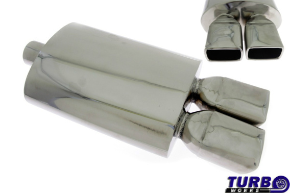Uniwersalny tłumik sportowy o konstrukcji przelotowej firmy TURBOWORKS. Tłumiki tej firmy wyróżniają się najlepszym na rynku stosunkiem jakości do ceny. W całości wykonany ze jest ze stali nierdzewnej, polerowanej.