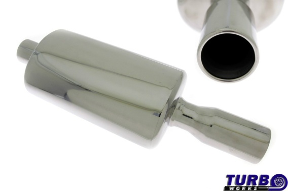 Uniwersalny tłumik sportowy o konstrukcji przelotowej firmy TURBOWORKS. Tłumiki tej firmy wyróżniają się najlepszym na rynku stosunkiem jakości do ceny. W całości wykonany ze jest ze stali nierdzewnej, polerowanej.