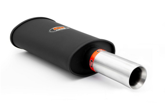 Uniwersalny tłumik sportowy firmy RM Motors oparty na aluminiowanej konstrukcji puszki, końcówki tłumika wykonane są z polerowanej blachy kwasoodpornej. Można z powodzeniem stosować w większości samochodów, także w dieslach. Pięknie podkreśla pracę silnika, nie będąc przy tym uciążliwym podczas dłuższej jazdy. Każdy element produktu wykonany w technologii CNC.