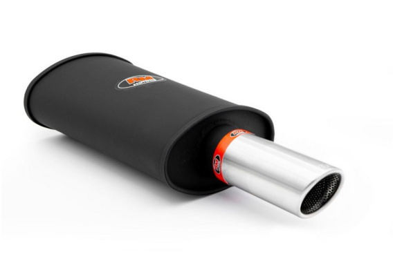 Uniwersalny tłumik sportowy firmy RM Motors oparty na aluminiowanej konstrukcji puszki, końcówki tłumika wykonane są z polerowanej blachy kwasoodpornej. Można z powodzeniem stosować w większości samochodów, także w dieslach. Pięknie podkreśla pracę silnika, nie będąc przy tym uciążliwym podczas dłuższej jazdy. Każdy element produktu wykonany w technologii CNC.