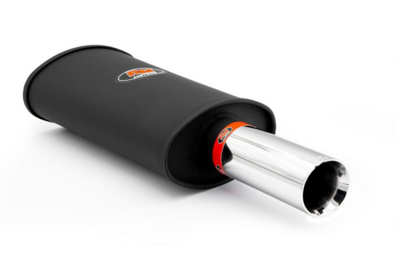 Uniwersalny tłumik sportowy firmy RM Motors oparty na aluminiowanej konstrukcji puszki, końcówki tłumika wykonane są z polerowanej blachy kwasoodpornej. Można z powodzeniem stosować w większości samochodów, także w dieslach. Pięknie podkreśla pracę silnika, nie będąc przy tym uciążliwym podczas dłuższej jazdy. Każdy element produktu wykonany w technologii CNC.