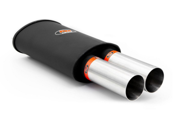 Uniwersalny tłumik sportowy firmy RM Motors oparty na aluminiowanej konstrukcji puszki, końcówki tłumika wykonane są z polerowanej blachy kwasoodpornej. Można z powodzeniem stosować w większości samochodów, także w dieslach. Pięknie podkreśla pracę silnika, nie będąc przy tym uciążliwym podczas dłuższej jazdy. Każdy element produktu wykonany w technologii CNC.