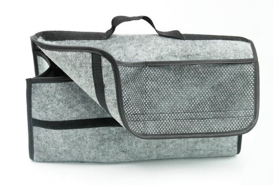 Torba do bagażnika wykonana z mocnego tapicerskiego materiału odpornego na zabrudzenia. Obszerna komora zamykana na rzep, w której zmieścimy wiele przedmiotów. Na spodzie oraz na tylnej ściance rzepy zapobiegające przemieszczaniu się w bagażniku w czasie jazdy samochodem. Brzegi zostały wykończone lamówką. U góry torby znajduje się mocna rączka, która umożliwia swobodnie przenosić kuferek.