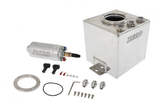 Uniwersalny zbiornik paliwa firmy TurboWorks o pojemności 2L. Wykonany w całości z aluminium. Idealny zbiornik do zastosowania jako swirl pot. Posiada w zestawie wysoko wydajną pompę 044.