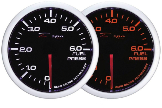 Wskaźnik ciśnienia paliwa firmy Depo Racing.Charakteryzuje się najwyższą dokładnością wskazań, dzięki zastosowaniu japońskich silników krokowych. Firma Depo na rynku wskaźników tuningowych istnieje już od ponad 20 lat. Dzięki wysokiej jakości zyskała sobie już wielu Klientów na całym świecie.