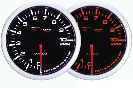 Wskaźnik - obrotomierz 10000RPM firmy Depo Racing.Charakteryzuje się najwyższą dokładnością wskazań, dzięki zastosowaniu japońskich silników krokowych. Firma Depo na rynku wskaźników tuningowych istnieje już od ponad 20 lat. Dzięki wysokiej jakości zyskała sobie już wielu Klientów na całym świecie.