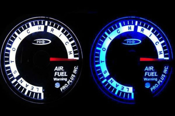 Wskaźnik afr firmy Pro Racing średnicy 52mm do umieszczenia w adapterze.
