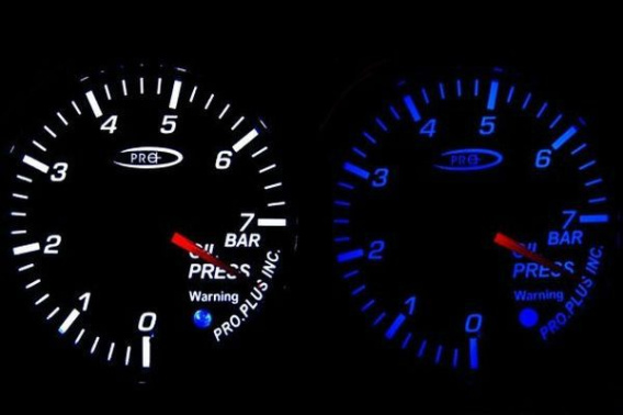 Wskaźnik ciśnienia oleju firmy Pro Racing średnicy 52mm do umieszczenia w adapterze.